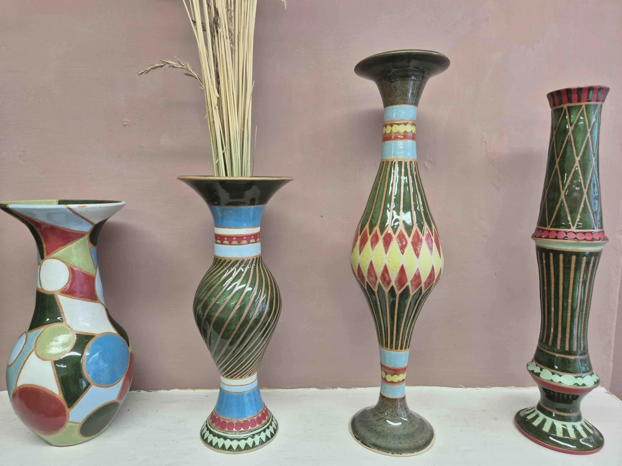 Being endlessly fascinated by all the possibilities and the processes of transforming clay into something more permanent, Emily Clarke makes wheel thrown stoneware pots, sometimes with humorous and eccentric designs.