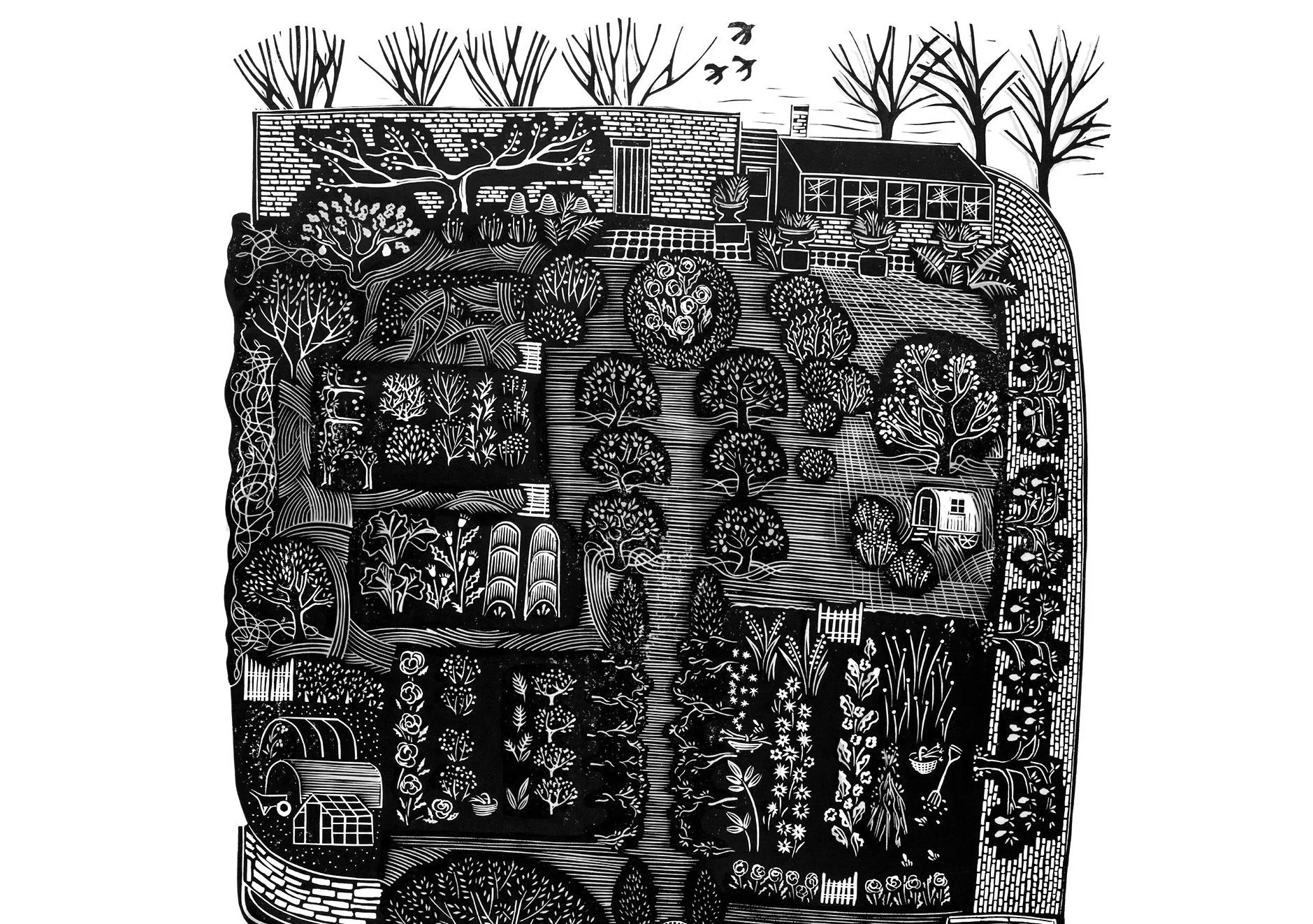 Sarah Kirby discusses the Pythouse series of linocuts marking the seasons at a South Wiltshire kitchen garden