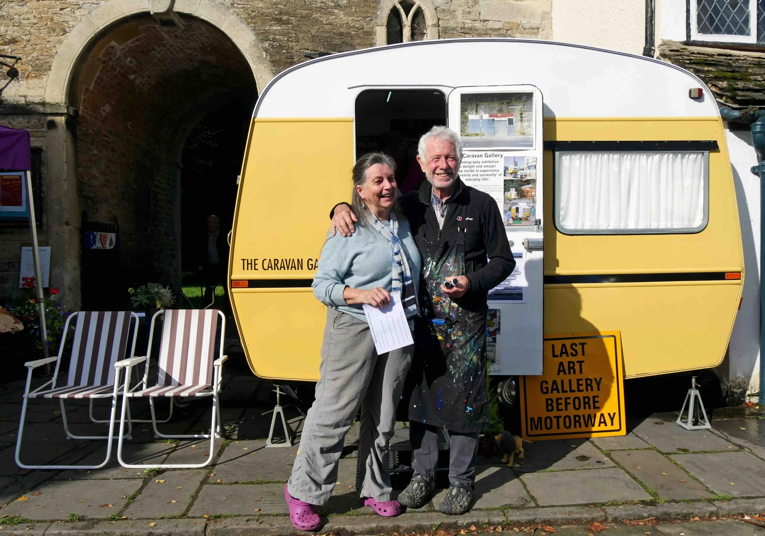 Prior to commencement of the public artworks, Caerbladon commissioned The Caravan Gallery, a collaboration between artists Jan Williams and Chris Teasdale based around a 1969 holiday caravan which functions as a mobile exhibition venue, to engage visitors and encourage creative participation. They spent a week out and about in Malmesbury, including two days on Market Cross and at Backbridge Farm. They asked questions and took photographs, enabling us to create a new mini exhibition of local portraits called Pride of Place Malmesbury at our gallery. They also acted as evaluators for the project, collecting data and feedback and undertaking a wider survey to identify Malmesbury’s arts and cultural needs and how best they can be met.